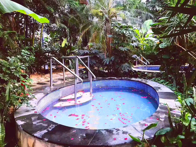 而且这边的温泉浴室是一个占地4030平方米的阳光型室内温泉,里面花草树木的装饰,给我一种仿佛来到东南亚热带雨林中,烟气氤氲。大小不同的浴池有自己的风格,比如花瓣雨、冰泉、泡泡浴以及瘦身浴池等等,可以体验一下不同浴池的玩法。