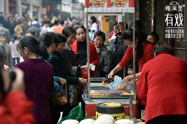 来之前,我对雍溪这个地方也不是很了解,好在活动现场都有大大的展板,介绍这座古色古香的小镇。古时候,从成都到重庆的小川东道上,雍溪就是重要的一站,曾经也是非常繁荣,还有“小香港”的称号,啧啧,厉害啦!雍溪和川剧更是从唐朝就结下了缘分,雍溪人爱演戏,也爱看戏,这个传统一直延续到了现在,才有了这次的川剧艺术节。