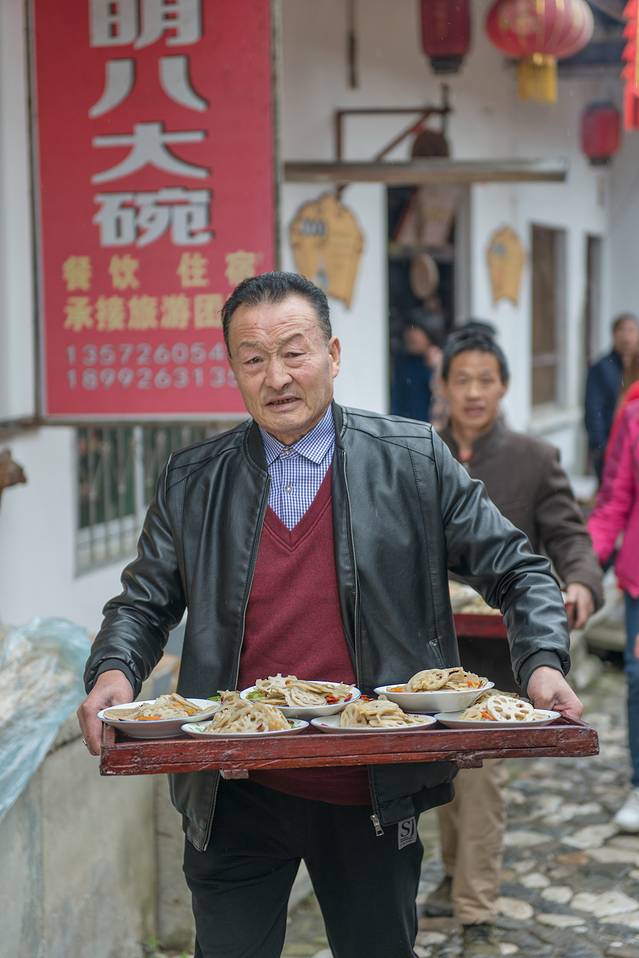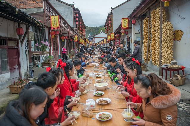 当地百姓有“山美不过紫柏山,好吃还算八大碗”的说法,言语间满是对家乡的爱。热情好客的乡亲们,在老街上支起了长桌宴,从街头到街尾。条子肉、米粉肉、蒸土鸡、蒸焖野味……都是咱拿手的,给远方来的客人们尝尝。于是,那一天的老街上,歌声笑声 ,和着飘香的酒菜,就这样住进了我心里。