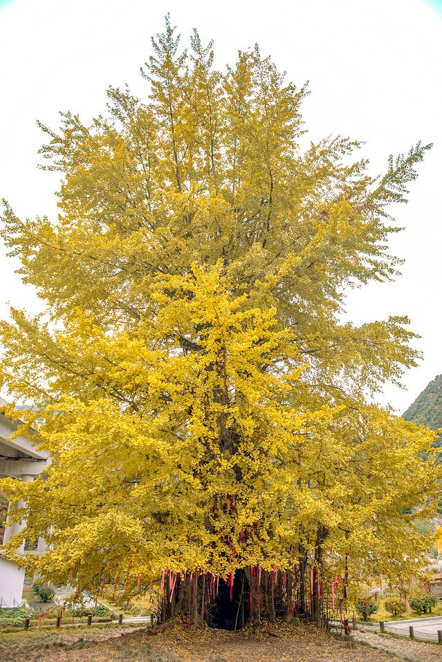 高江路的东端,相传为周文王亲手栽植的4000岁的古银杏树,盛装而立,王一般傲岸。那一岁岁的荣枯里,那一叶叶的金黄里,又深藏了多少爱恨荣辱。