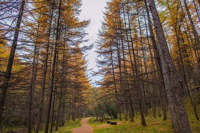 山脚下的情人谷,金黄的松叶,一路蜿蜒到林深处。脚下松软,头顶斑斓,耳边清寂……