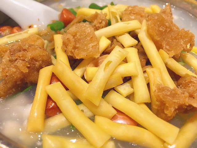 不管双十一再如何掏空我的钱包,酥肉豆花都一定要吃到,没有什么能够阻挡,对酥肉豆花的向往~满满的一碗,将最后加上的酥肉小块和脆片搅到薯粉下面,再沿顺时针鼓捣鼓捣,直到一碗清淡的酥肉豆花逐渐有了辣椒的颜色,每次到这个时候,无论温度还是味道,都是最佳的!(一般人我不告诉他),每次吃酥肉豆花,都会有一种油然而生的幸福感,快乐~