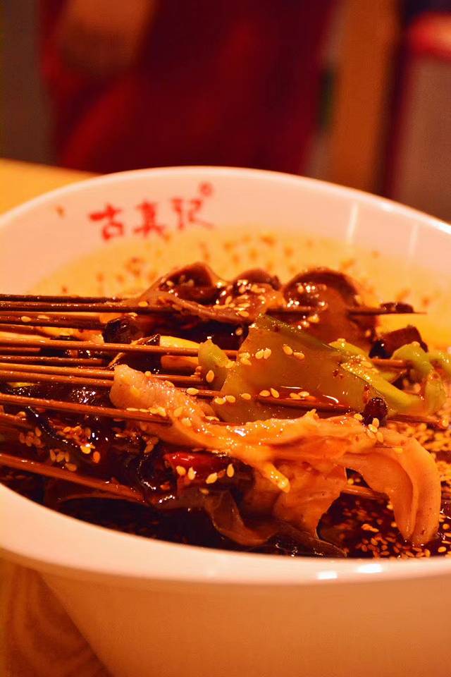 到乐山怎么能不吃钵钵鸡呢?吃钵钵鸡又怎么会不来古真记呢?味道没得说,价格也是真便宜,才七毛八毛一串,而且签签上穿的食材也是肉眼可见的良心,看得见的新鲜!点上一钵红油钵钵鸡,坐在店里沿街的位置,来碗鸡汤饭,慢慢戳签签,看着路上寻味来来往往的路人,感受乐山专有的慢美食生活~