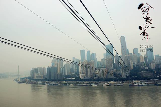 其实,10分钟的索道时光不算短,但之于人生却短暂得像一瞬间。身边拥挤的乘客让我已然不能更好体会到飞翔过江的感觉,于是只能将目光从窗口投掷出去,远处的长江大桥车水马龙,桥廊腹中有轻轨快速通过,从遥远的地方发出听起来轻微的轰鸣声。