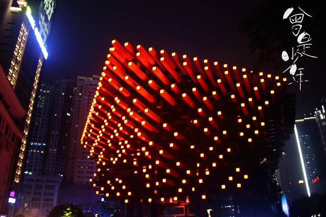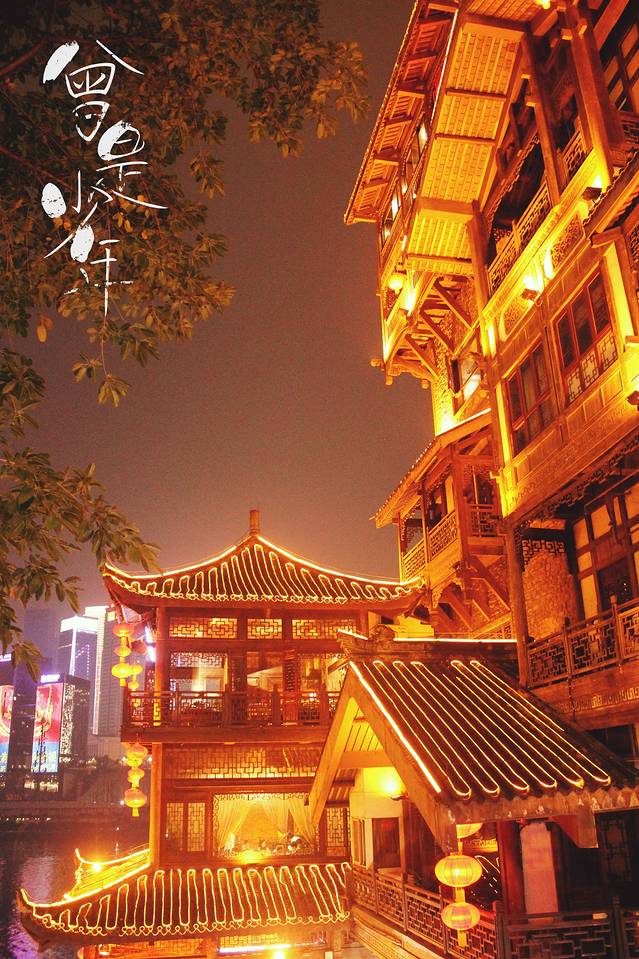 洪崖洞依旧灯火阑珊,夜色里游人如织。不知何时起,人们便形容它是现实版的汤屋,在江边每夜亮起灯火,高低错落的仿古式屋檐下的灯火就像遇水便晕染开的彩色墨迹,在眼里不觉就泛滥开,变成一片霓虹的梦幻海。