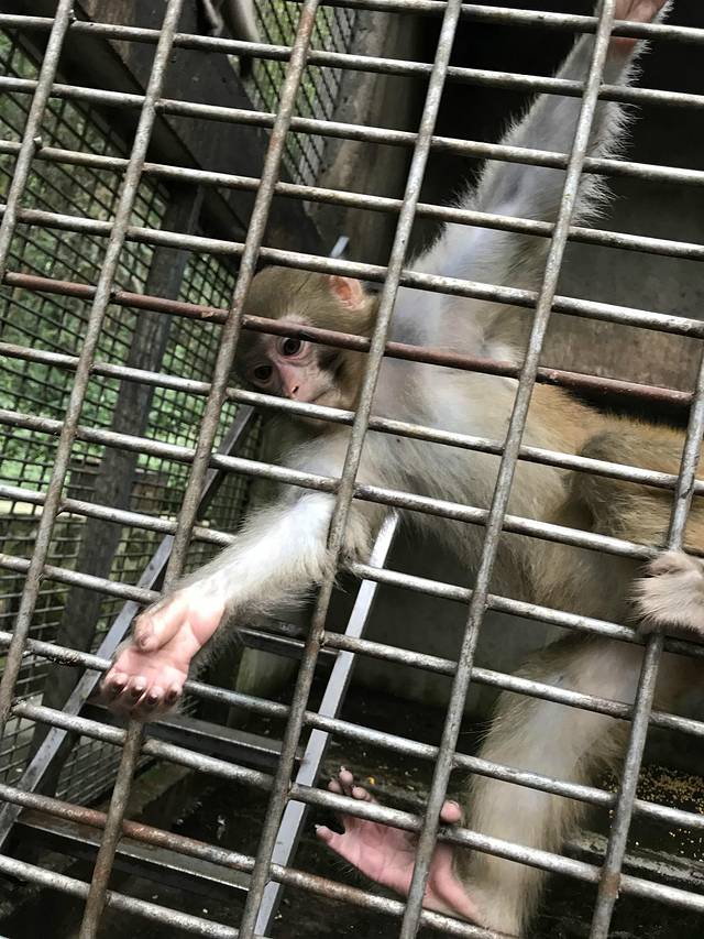 再往里走是花果山,里面住着(被关着)许多大猴子小猴子,像游人卖卖萌赚点口粮。忍不住想想,是山林里饥一顿饱一顿,时不时遭遇各种敌人,但却自由自在的猴子幸福些,还是关在笼子里,没有自由,可安全有保障,口粮有保障的猴子更幸福些呢?