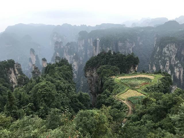 空中花园门票另外购买,还是比较值得一走的,除了看到那块彩色的田园,远处观光电梯的全景,再往下走,各处观景台还可以从近处欣赏石林,这与全景的观赏的角度又不一样,当然,想象力也很重要。