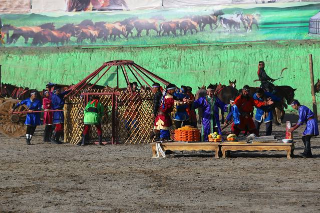演出时长50分钟,讲述了800多年前蒙古族人民的生产、生活、游牧和征战场景。