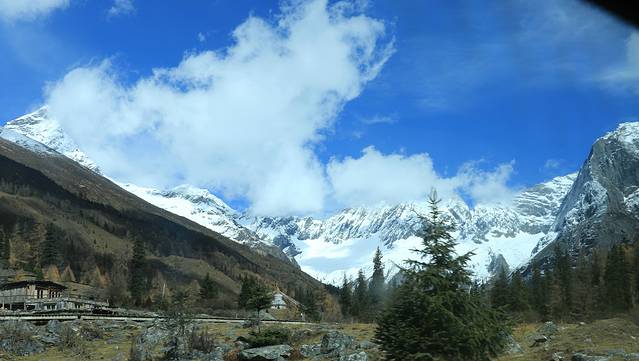 长坪沟从游客服务中心到喇嘛寺坐观光车,后段可选择徒步或骑马,也能看到四姑娘山;
