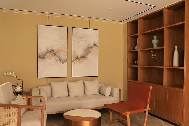 我们这次住宿选择的是一家新开业的酒店,酒店是新中式的设计风格,环境古朴典雅,很有禅意,一楼是多功能融合大堂,大堂角落摆放了一盆狗尾巴草,充满了自然的气息。