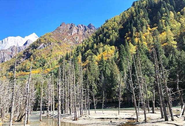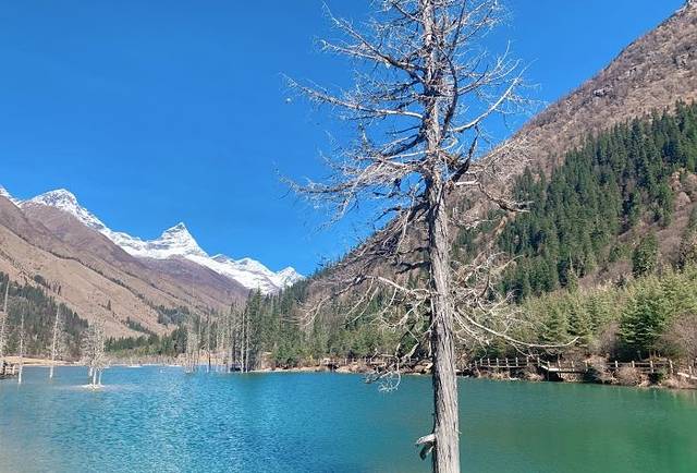 风景太美了,清澈的海子和枯树相得益彰,太有意境了。