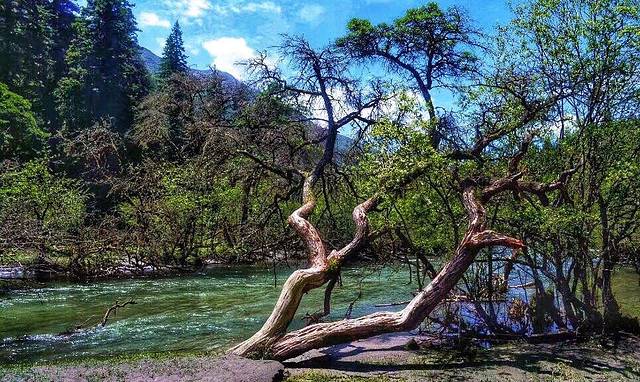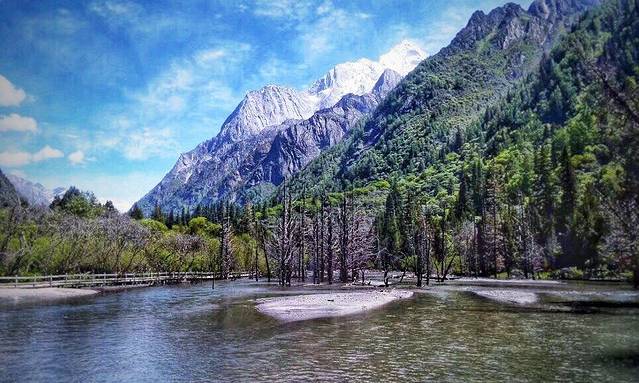 第一站我们去的是长坪沟,它是位于四姑娘山风景名胜区的东北部,全长29公里,面积约100平方公里,是四姑娘山的主要景区之一。这里既有森林峡谷、又有层叠流水,俨然一个原生态的天然氧吧,沟内主要景点有格鲁派喇嘛寺、古柏幽道、枯树滩、净心洞、红石阵等。
