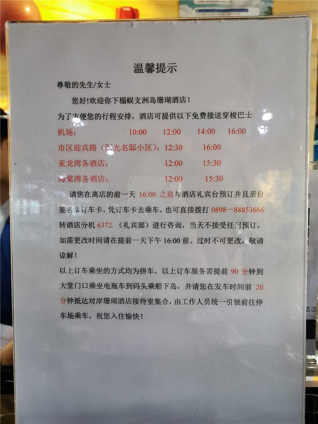 这边给大家提醒,回程的送机是要当日下午16点前预订好的,还好前台小哥哥帮我赶紧补订,要不然就错过了。