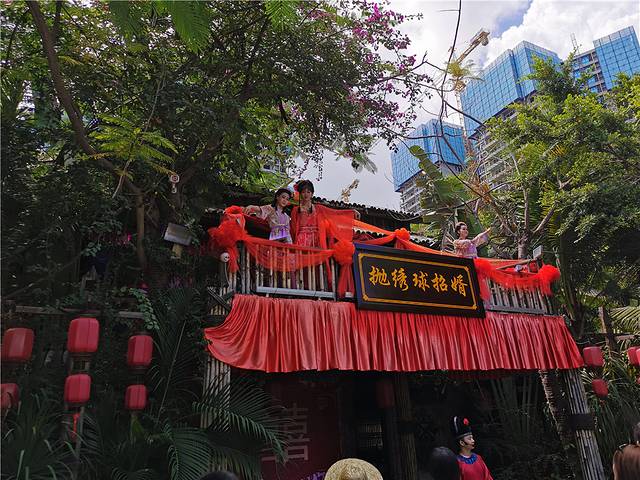 比起演出,小朋友更喜欢外面的风情街。景区不是非常大,有现场小表演,还有抛绣球招亲。