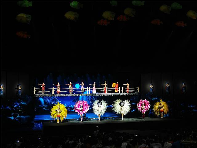 比较遗憾的是:不能分开买,必须一起买,300+的门票真的让我肉痛,建议大家提前先网上买票。比现场可以便宜几十块钱。表演还是还可以的,分成多个环节:落笔洞、鹿回头、冼夫人、 丝绸之路 、鉴真东渡、美丽 三亚 。剧透一下,会喷水,有杂技也有舞蹈,灯光各种