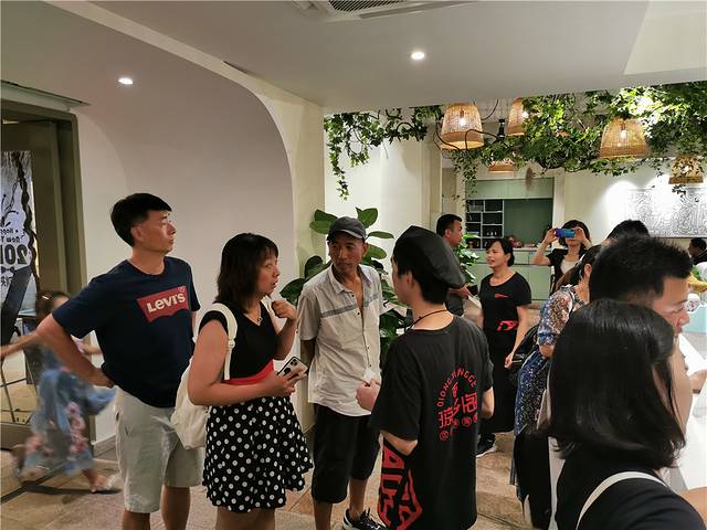 琼乡阁】位于 三亚湾 ,在机场和 大东海 的中间位置。晚上七点,门口里三层外三层都是排队的客人,服务员也是忙里忙外。我们选择装修带着小清新,绿植和蔓藤,让人有步入丛林的感觉。