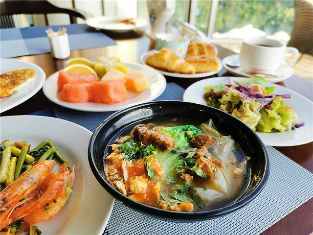看完日出,回酒店吃个早餐。非常丰盛,看着初升的太阳,大海吃早餐,心情怎么能不飞扬呢