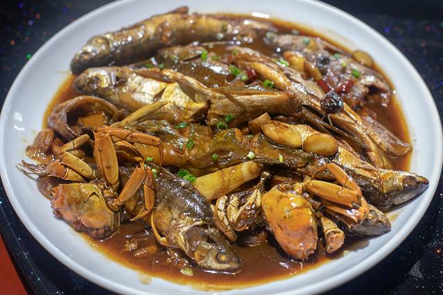 鳑鲏鱼是一道从未见过的菜肴,野生的小鱼经过油锅的煎炸,口感酥脆,让人吃得停不下来。套肠的体验让我耳目一新,作为一个不敢吃动物内脏的人来说,这次的套肠并没有让我难以下咽,反而觉得别是一番滋味,破了味蕾新体验,值得大家尝试。