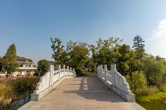 可惜寒冬未至,不能一睹揽桥残雪的凄美,然而在这浓浓的深秋,同样别是一番光景。在秋日的渲染下,揽桥荡公园阳光明媚,一片生机勃勃。古老的石桥高高挂起,承载着来往的游人,石桥在阳光的照射下,呈现出青灰色,尽显历史底蕴。