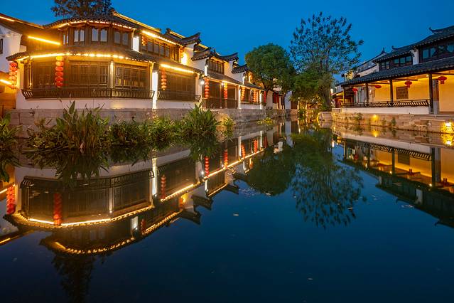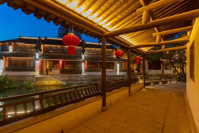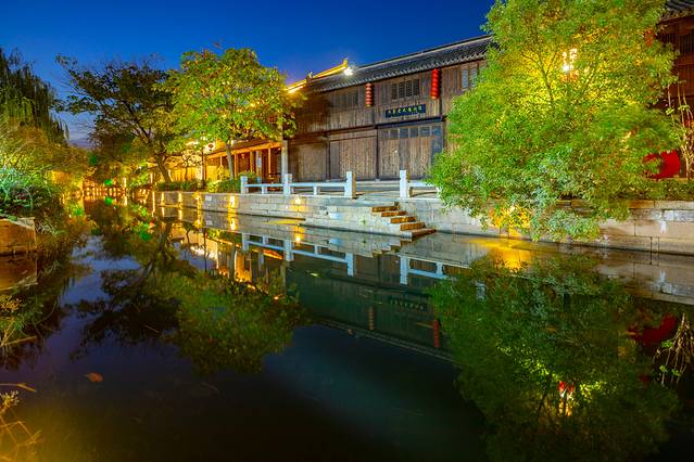 转眼天色渐晚,夜幕下的黎里显得格外动人。暖色的灯光将古镇点亮,家家户户都挂起了大红灯笼,浓郁的生活气息扑面而来。