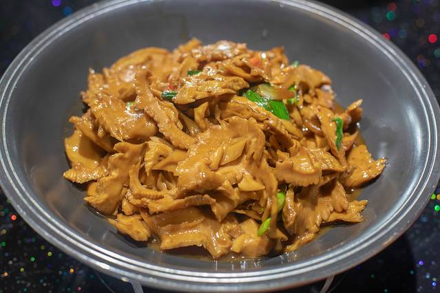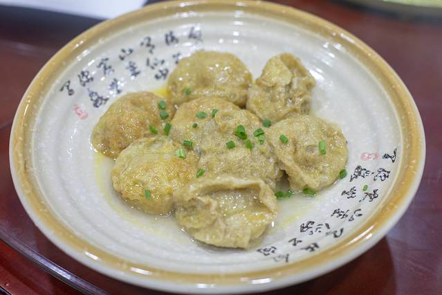 比如这份油豆腐包肉,看这摆盘和色泽,完全不足以引起食欲,但是初尝之后,却停不下来,这大概是便是老店最注重的地方,摒弃华而不实,专做味道和品质。