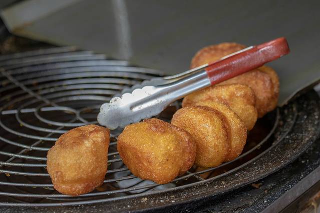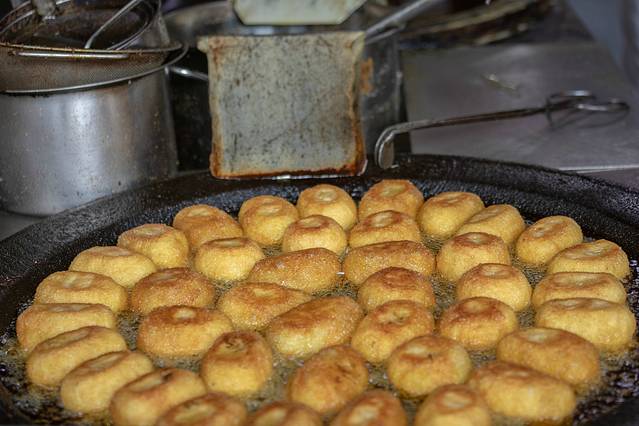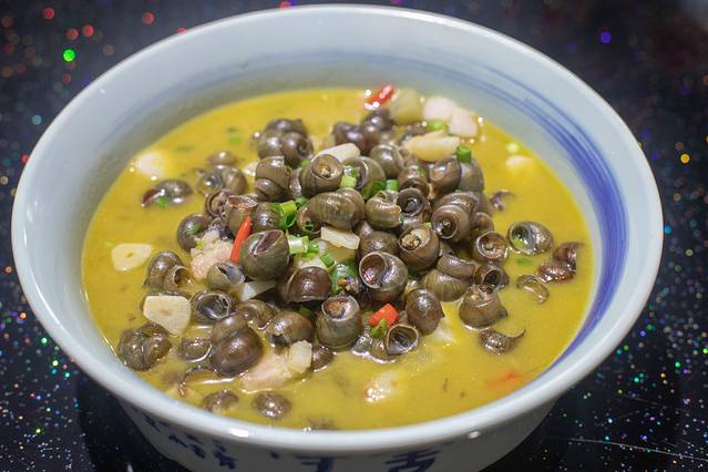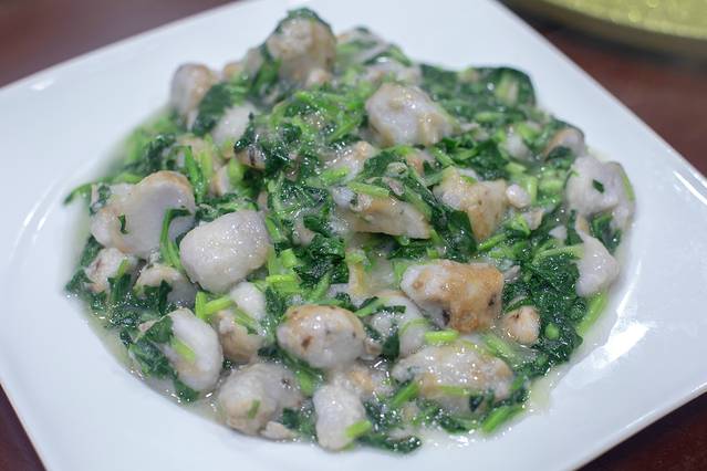 套肠同样让人爱不释手,原本让人难以下咽的猪大肠,经过一道道工序的处理,呈现出一圈圈的螺旋状,竟然莫名觉得有些可爱,在蘸料的搭配下,美味十足,是一道不容错过的地道风味。芋头圆子让我眼前一亮,与之前尝试过的烹饪方式大相径庭,这里的芋头竟然和荠菜混合搭配,看上去色泽诱人,口感清香,软糯的芋头圆子在口中粉碎弥漫,让人大饱口福。