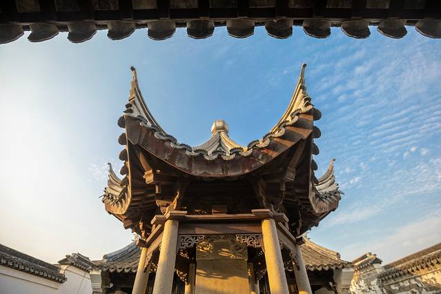 在黎里古镇的庙桥弄内,藏着这样一座大户人家,闹中取静,在不老的时光中熠熠生辉。它就是周宫傅祠,一座由乾隆皇帝亲自下令修建的专祠,为纪念工部尚书周元理而建。周宫傅祠共分为前后六进,这在当时来说,无疑是一处大户。