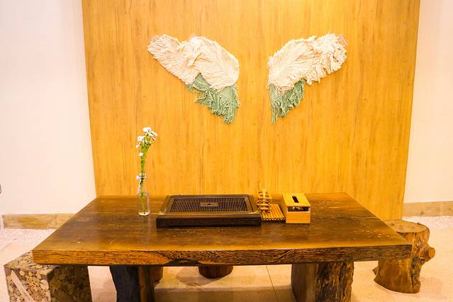 一对天使的翅膀下,一席茶台也是安静的等待有缘人来打开。