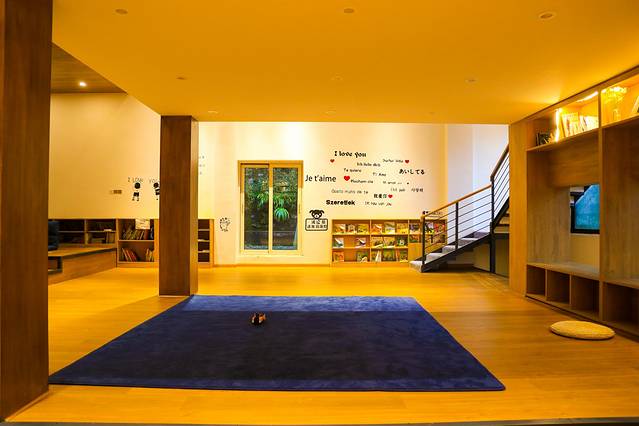 这里还有儿童区,可以和小朋友一起读绘本,这是一件很有意思的事情,小朋友也可以在这里的一个夹层中玩耍玩具!