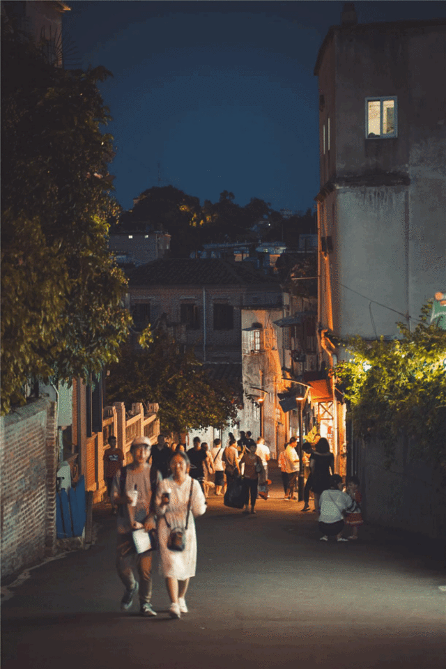 夜里,是鼓浪屿对我而言最有魅力的时刻,虽然热闹,却不觉聒噪,澄黄的路灯,偶尔邂逅的小猫,仿佛置身枝裕和电影里温柔的人间火气中。