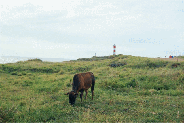 我去到的时候,已经是傍晚时分,能看到青青的草地,甚至晃晃悠悠的牛,整个岛上的气氛安静慵懒,好像一切的交替和转换,都与它无关。