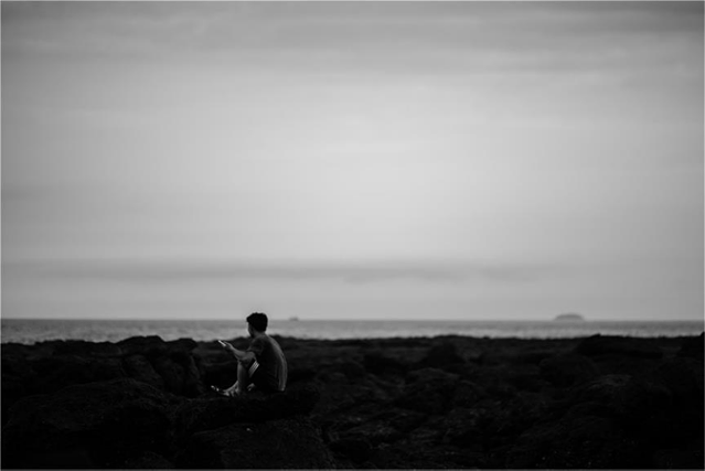 从日落呆到银河璀璨,从礁石被海水一遍遍地湿润,在日落下辉映着金黄的光,到暗淡,冰凉,好像什么被点燃而起,什么又突然在不知所措中落幕。