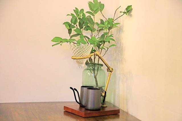 书架上还有乡宿自己定制的茶具,以及手冲咖啡壶。