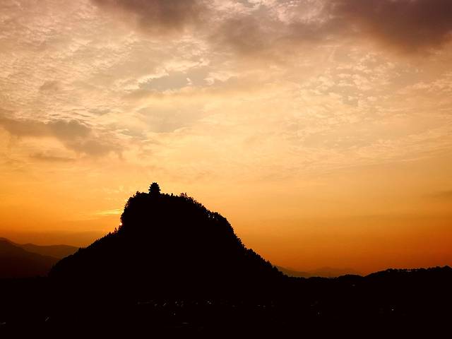 夕 阳西 下,晚霞为远处的 独山 披上金色的薄纱。