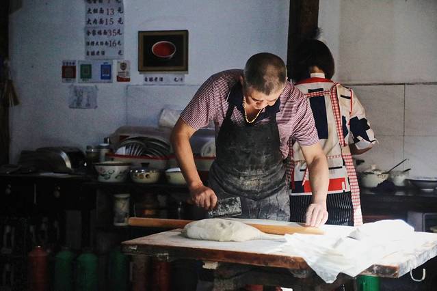 一家人分工合作,烧柴、揉面、煮面、放浇头,整套流程下来,配合默契。从侧面来看,像是一副充满烟火气的油画。