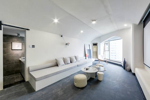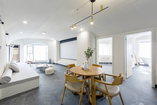 栖于云端之上,俯瞰整个城市天际线,圣托里尼的白和托斯卡纳的灰,在这个空间交映生辉,只为这一份纯净质感。