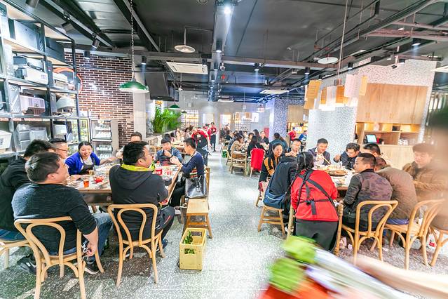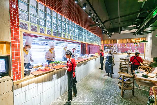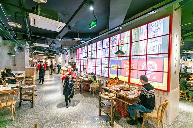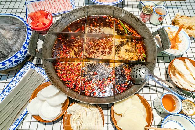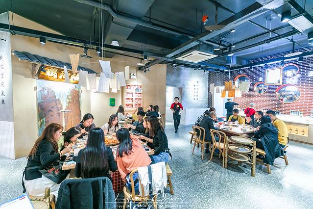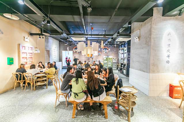 火锅店就紧挨着洪崖洞,步行五分钟就可到达。整体的设计以白色为主,融入了重庆市井的元素。有着怀旧的黑白电视机,也有着时尚另类的追星墙。开放式的备菜空间让顾客可以直视配菜的过程,干净卫生。桌面以方格小瓷砖打底,十分有意思。店内空间非常大,临窗边的座位还可以欣赏夜景,晚上五点多店里就已经全都坐满了。