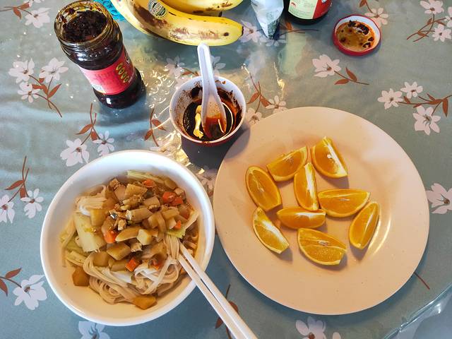 来到这儿的第一顿饭,是大熊老师做的,她真的很贤惠,也很能干,早餐:老干妈挂面😊已经很满足了,这边的面很贵