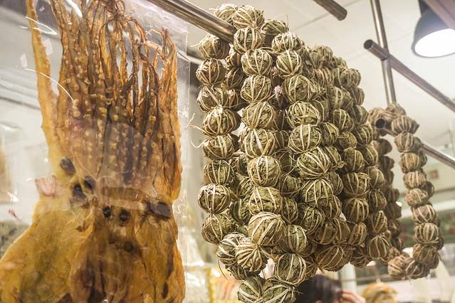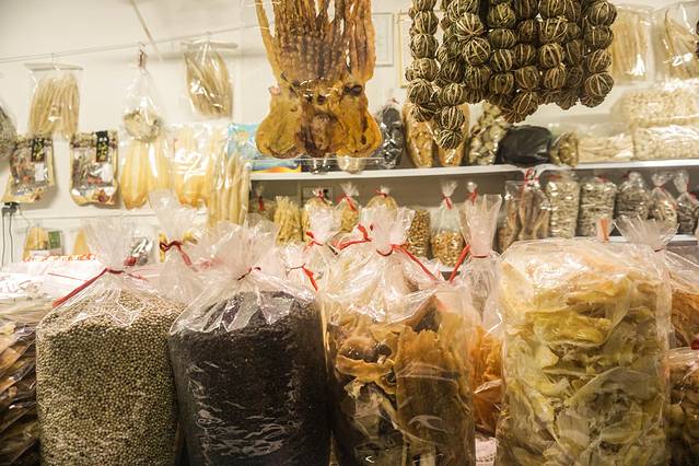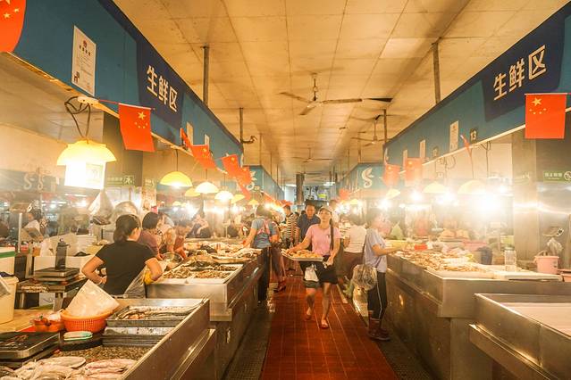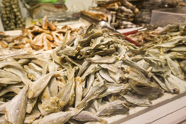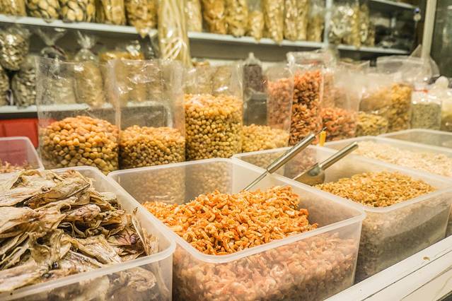 这里有着许多琳琅满目的海鲜干味还有肥硕新鲜的水果。走进市场里面你会发现海鲜干味店都堆积在一起。