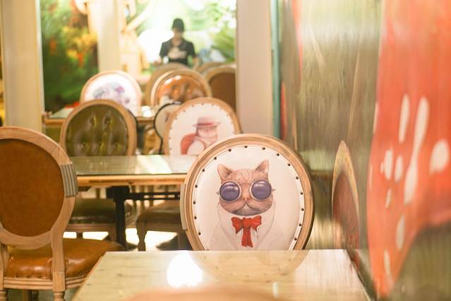 墙上的长颈鹿先生,一个个精神抖擞,正式非凡。来到这里犹如走进热带雨林般的欣喜,能够和这里的小宠物们一起玩耍。还有“张猫猫”和我们一起共进晚餐,它活灵活现的样子,怪让人喜欢这里的。