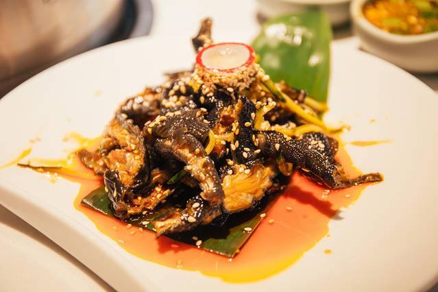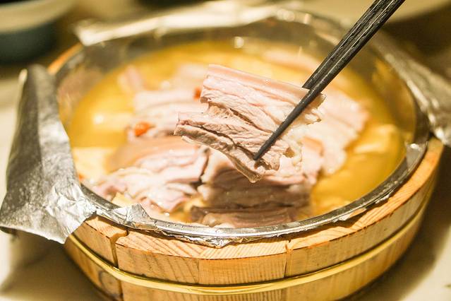 海胆豆腐煲也是店里的招牌菜之一。持续用热火恒温来保持豆腐的新鲜口感。豆腐外酥内嫩,还有海胆籽的咸鲜,口感层次分明,很特别。
