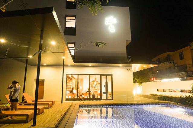 白天的大堂里放有许多书籍,颇有设计感,线条分明,温馨浪漫。这个时候坐下来静静翻阅书本就是不错的选择。 穿过玻璃门,室外是一个游泳池,虽然不大,但是水质清透,白天可以游泳,晚上可以静静地躺在椅子上抬头数星星。很是浪漫~