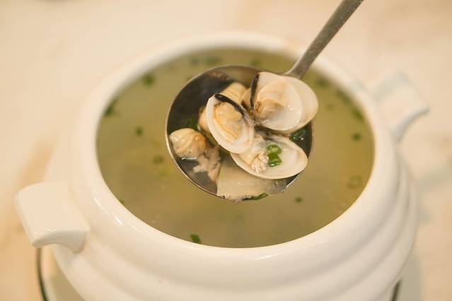 它是选材于原味的珍珠蚝,以高压锅的方式呈现出来。这是我在其他店里没有发现的一道特色菜。生蚝一定要趁热吃哦,肉质滑嫩鲜美,沾上酱料吃,简直人间美味。并且生蚝的营养丰富,是男人的加油站,女人的美容院。