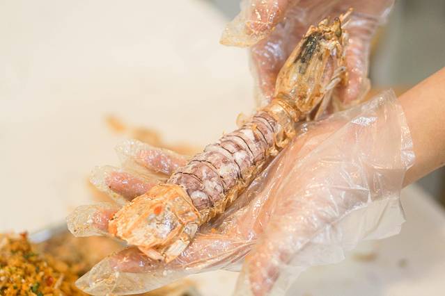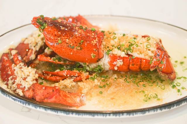 龙虾选择了蒜蓉清蒸,这样能保留龙虾本身的鲜甜,且肉质紧实,店里非常细心地帮我们夹碎了虾的大钳子,吃起来就方便多了,而且这次的龙虾选得非常好,肉超级多的,很赞呀!