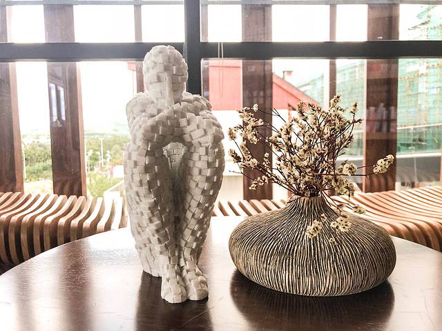 摆放的一些工艺品也是围绕着“书”姿态的人体模型居多,只要你稍微松懈下来,不妨看一下“它们”仿佛在叮嘱你好好学习。