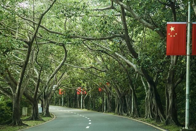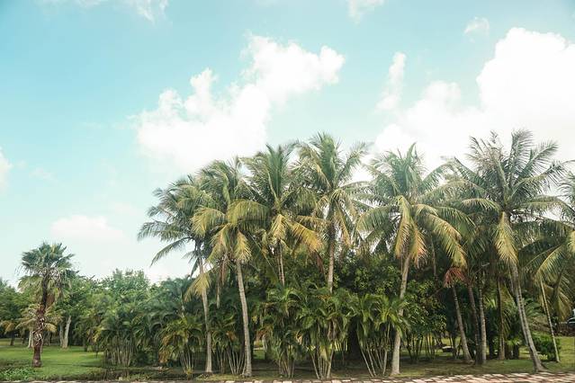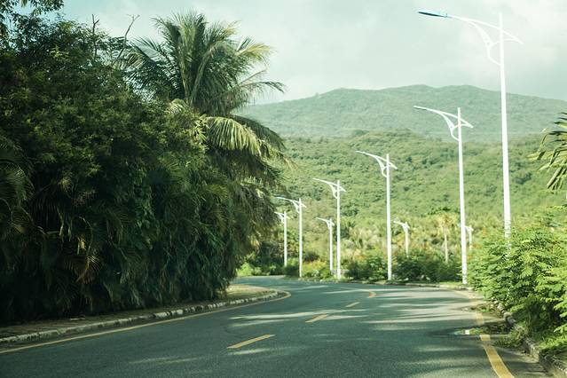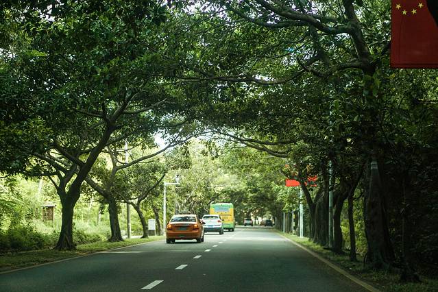从市区到亚龙湾的路上,沿途的建筑群体逐渐退去。我随着车子的前行,也一同把我们带入了绿色的世界里。