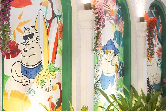 墙面上霸气外漏的张猫猫们,一副气势满满的样子,打扮也是海岛出行的模样。正因如此,我会感到放松身心。