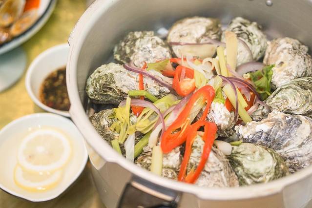 高压锅生蚝必点呀!上锅也是充满仪式感的,服务员齐声高喊:今晚吃蚝,祝您豪气冲天,然后放一个鸡蛋在高压锅蒸汽上跳舞。