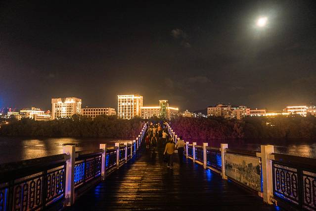 三亚的夜晚是美丽,温柔,多情的。白天频繁的景点打卡,会让我身心有些许疲惫,这个时候需要一个旖旎的夜景来治愈我。每到一个新的城市,我总是喜欢去看这座城市的夜景。像是一个城市的另一种风情面貌。而这一次,我来到了情人桥。