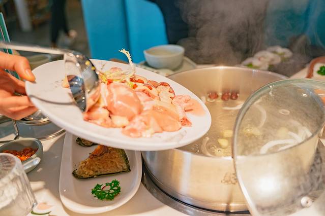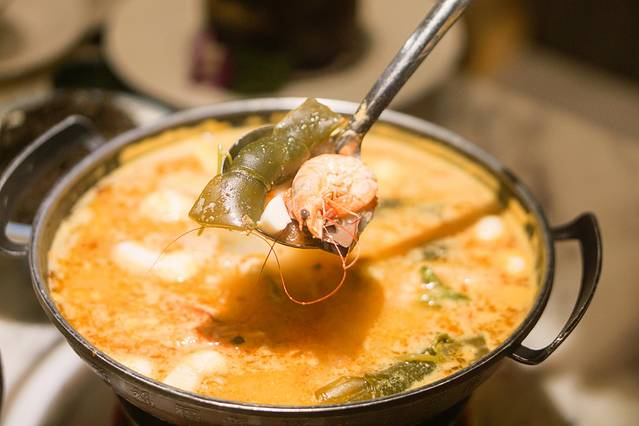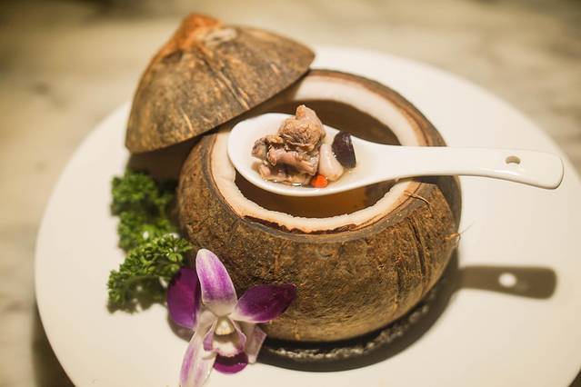 我和闺蜜两个人点了很多菜肴,都是餐厅比较正宗特色的~锅底本身就有椰子肉,还有一些食材。等锅底滚烫后,倒入汩汩椰子水,寻着烟雾都能感受到那股椰子清香~